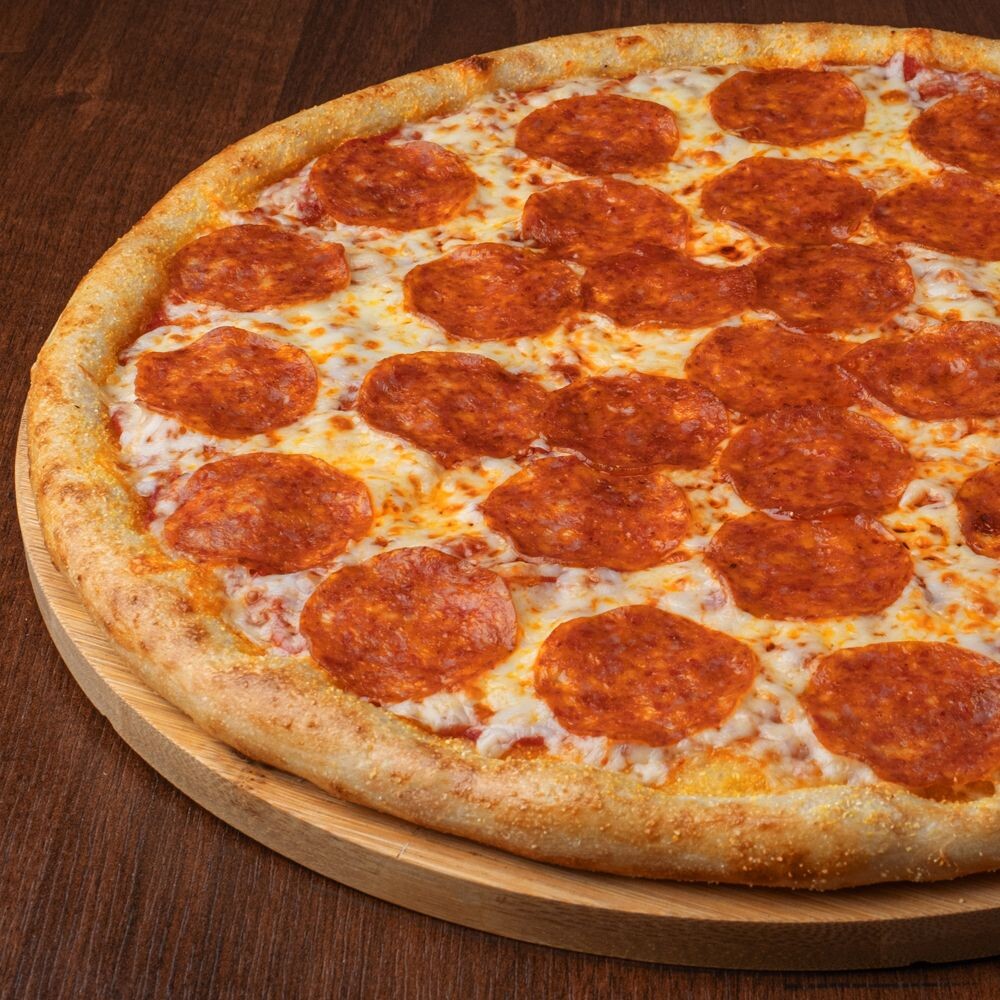Томатный соус. Сыр Моцарелла. Пепперони, увеличенная порция. Орегано.