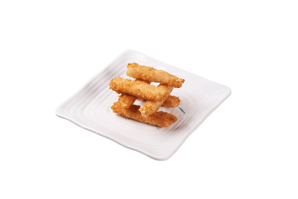 Оригинальные сырные палочки по авторскому рецепту, в панировке, обжаренные во фритюре до золотистой корочки.